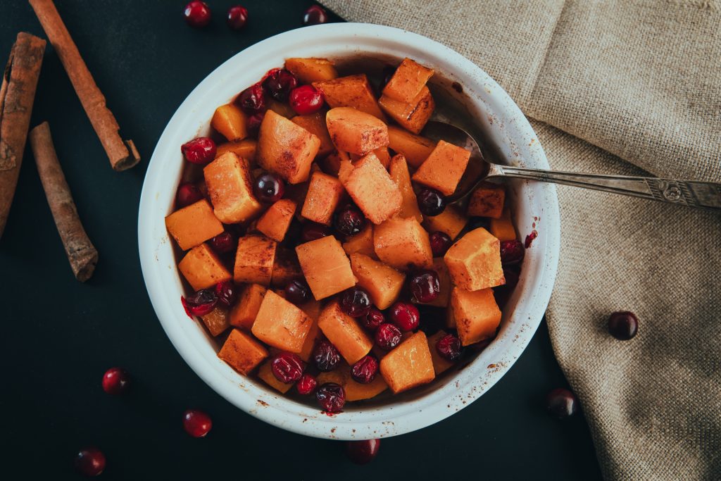 Roasted squash with cranberries & thyme