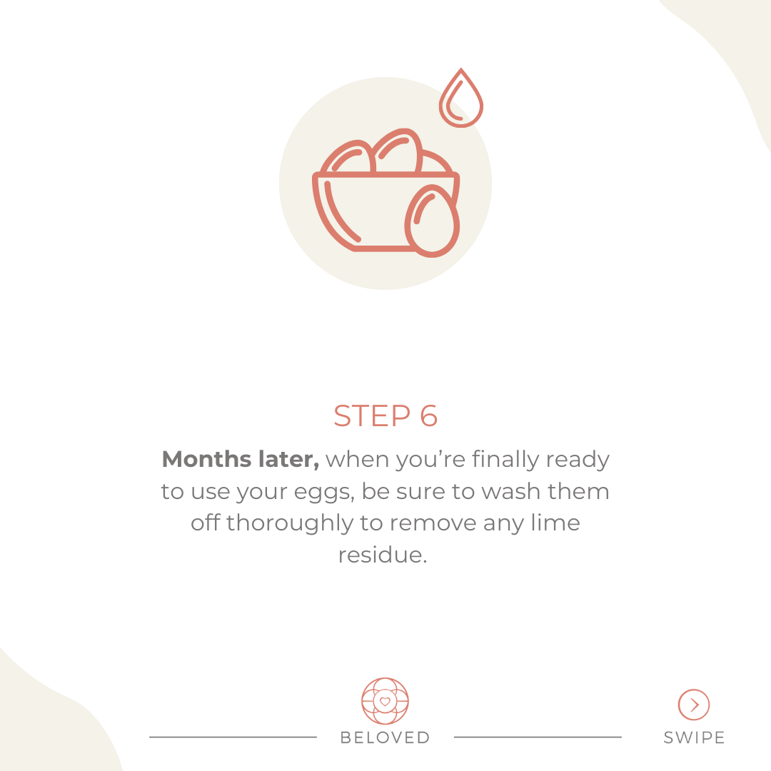 Months later, when you’re finally ready to use your eggs, be sure to wash them off thoroughly to remove any lime residue.